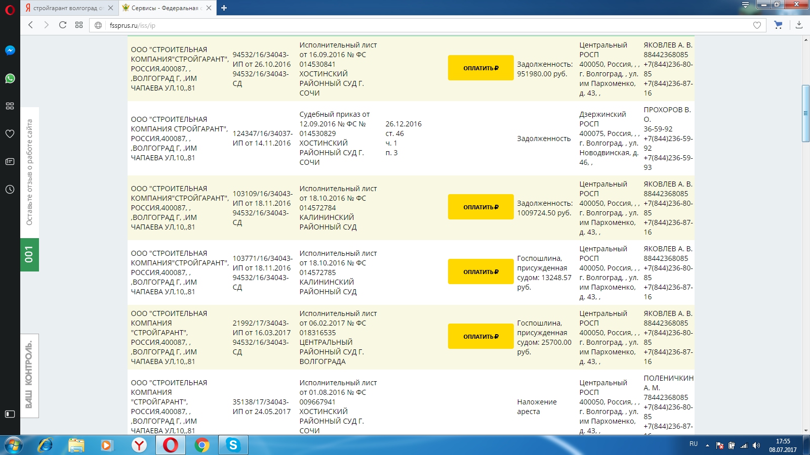 94532/16/34043-ИП от 26.10.16 , 124347/16/34037-ИП от 14.11.16, 103109/16/34043-ИП от 18.11.16 , 103771/16/34043-ИП от 18.11.16, 6018/16/22020-ИП от 12.02.16 , 35185/16/58048-ИП от 30.06.16, 21992/17/34043-ИП от 16.03.17,35138/17/34043-ИП от 24.05.2017 . Все это-исполнительные производства по долгам СтройГаранта в разных городах. В Волгограде сменили адрес на Балонина, 2а, из Пензы вообще сбежали в Барнаул, из Краснодара просто сбежали, из Сочи тоже! Не верьте, если будут врать, что на Чапаева-другая фирма - это все те же аферисты, смотрите в отзывах фамилии руководства!